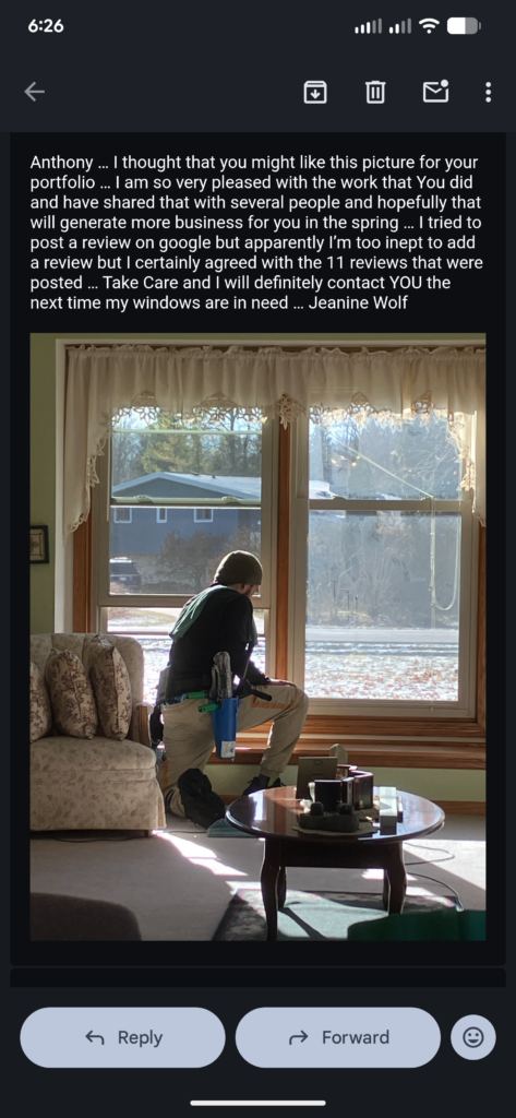 Anthony was great! Our windows are sparkling. Service was a great value. I will be calling A Squared again. Highly recommend.